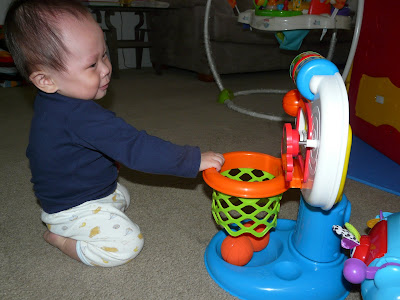 This is another toy that I opened yesterday to teach him how to put the basketball into the net.